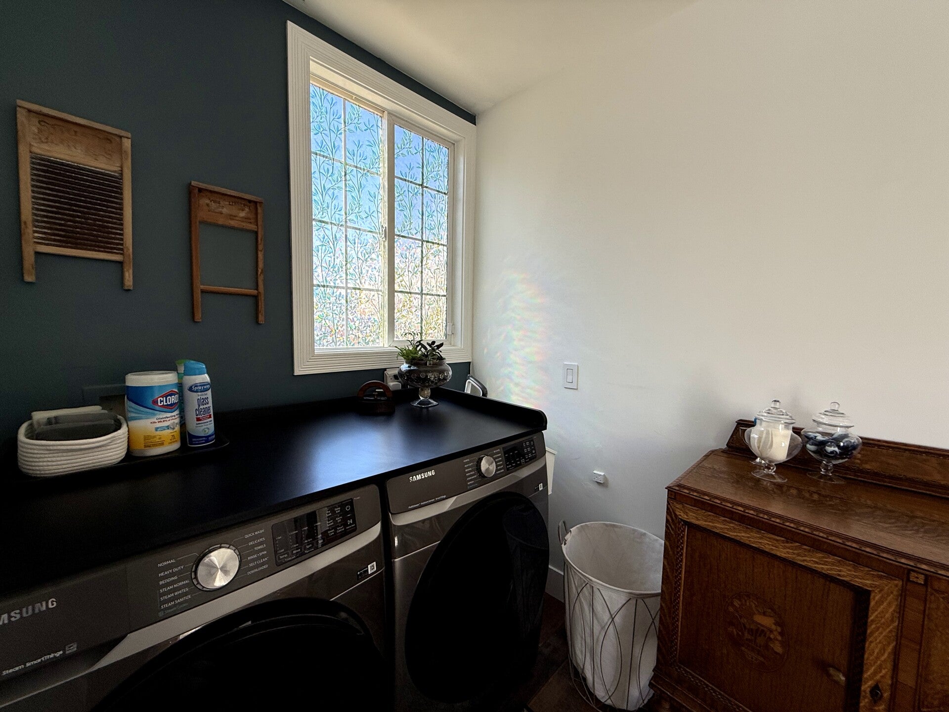 Ready to whip up something delicious? Our chef's kitchen is designed for you! Feel free to pick fresh herbs from the garden, and enjoy all the modern conveniences this fully loaded space offers. With brand new Samsung major appliances, top-of-the-line small appliances, and Henkel's knives and Cephalon pots, you'll have everything you need to create culinary masterpieces.